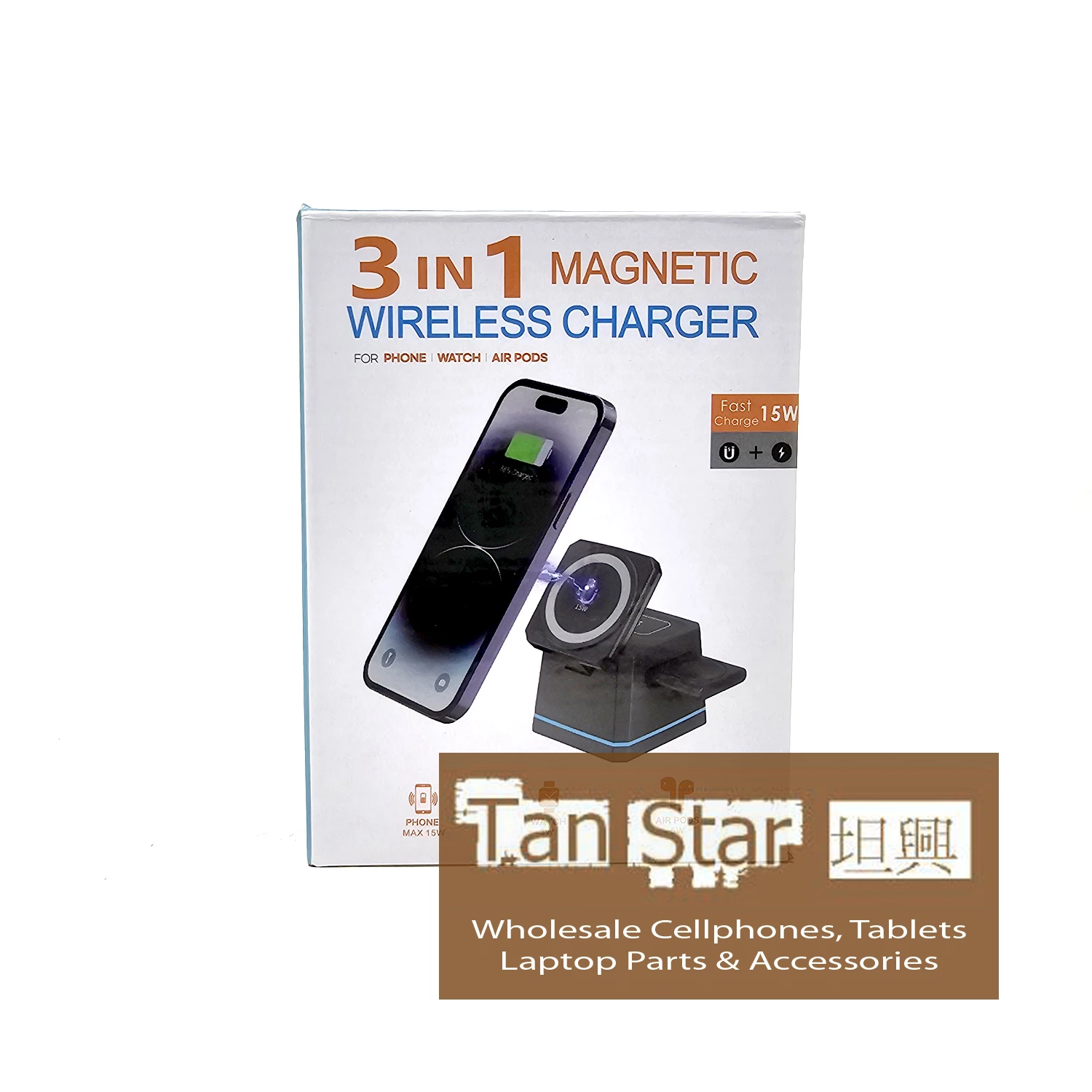 Simultaneous charging of 3 devices, for iPhones, Airpods and iWatch.