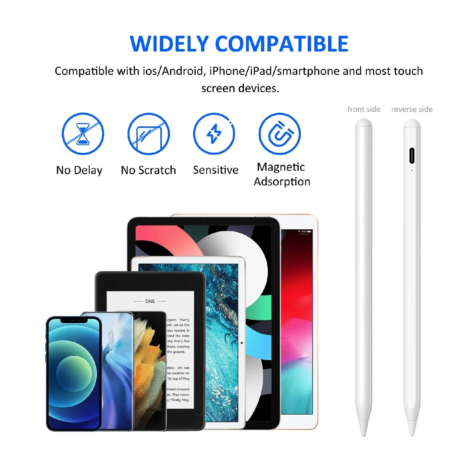 • 【Widely Used】 This iPad stylus pencil is compatible for hand-writing note-taking, drawing and design on an electronic device. Tested on iPhone iPad Pro Smart-Phones Tablets and any capacitance touch screens, all works great! A great alternative for Apple Pencil for artists, journalists, engineers, teachers and students, game players and etc.