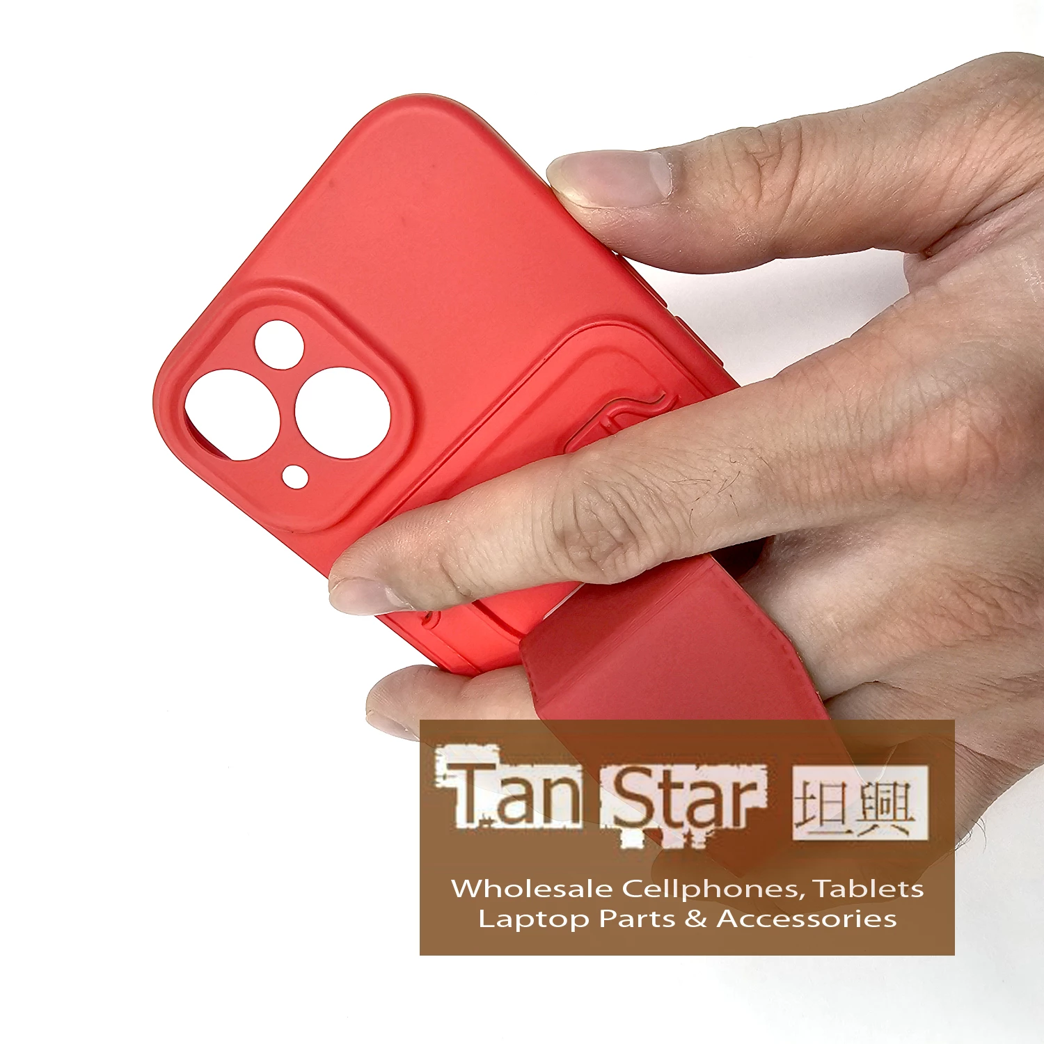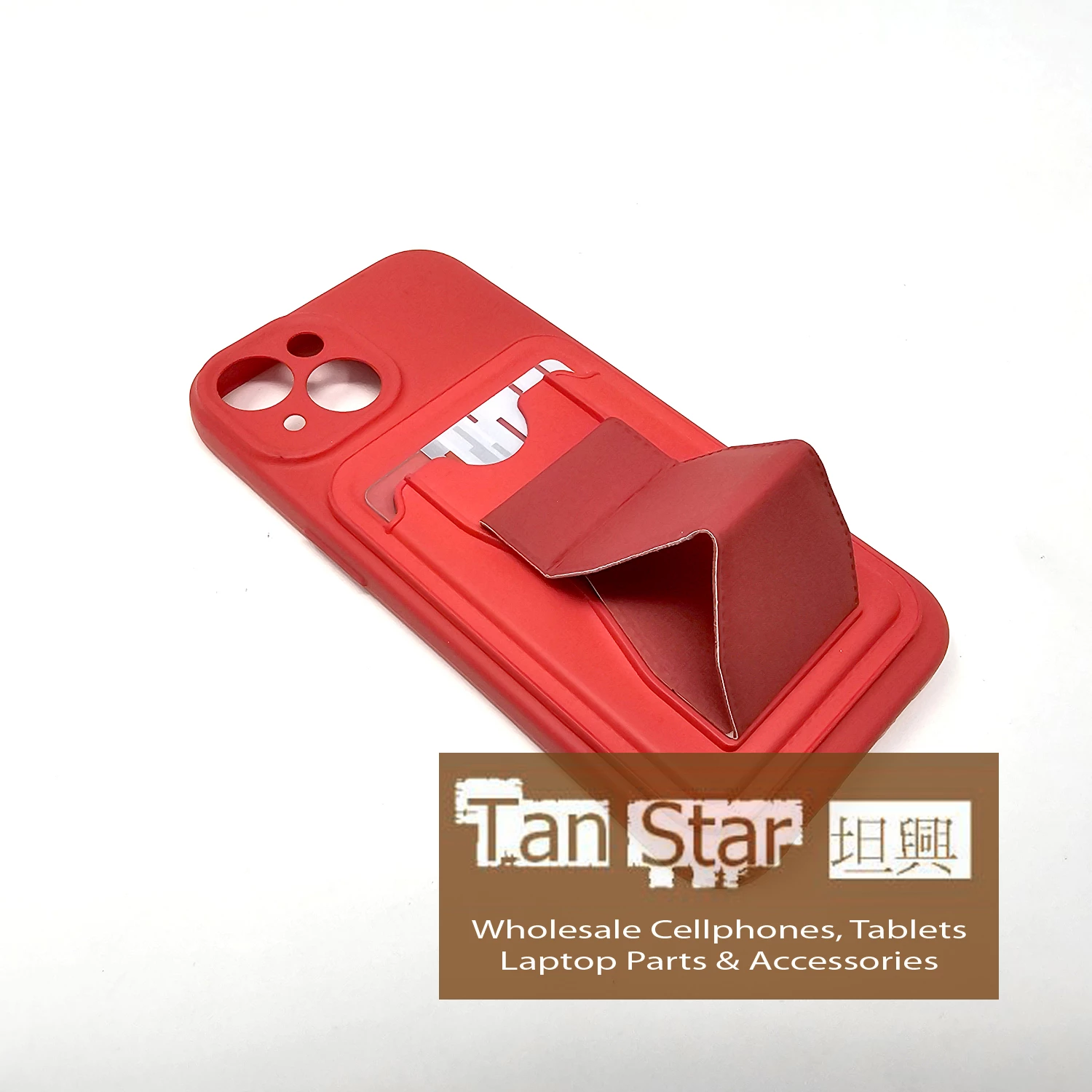 Standing Card Secure Wallet Card Holder Case with Passthrough Kickstand for Apple iPhone 15 Plus.