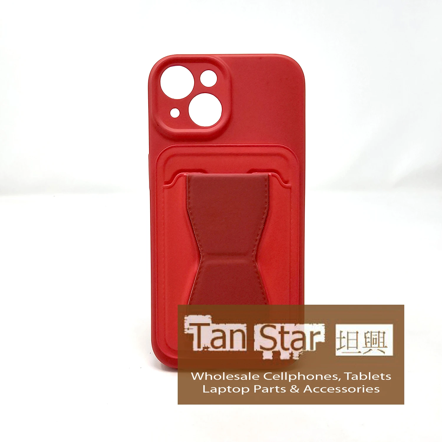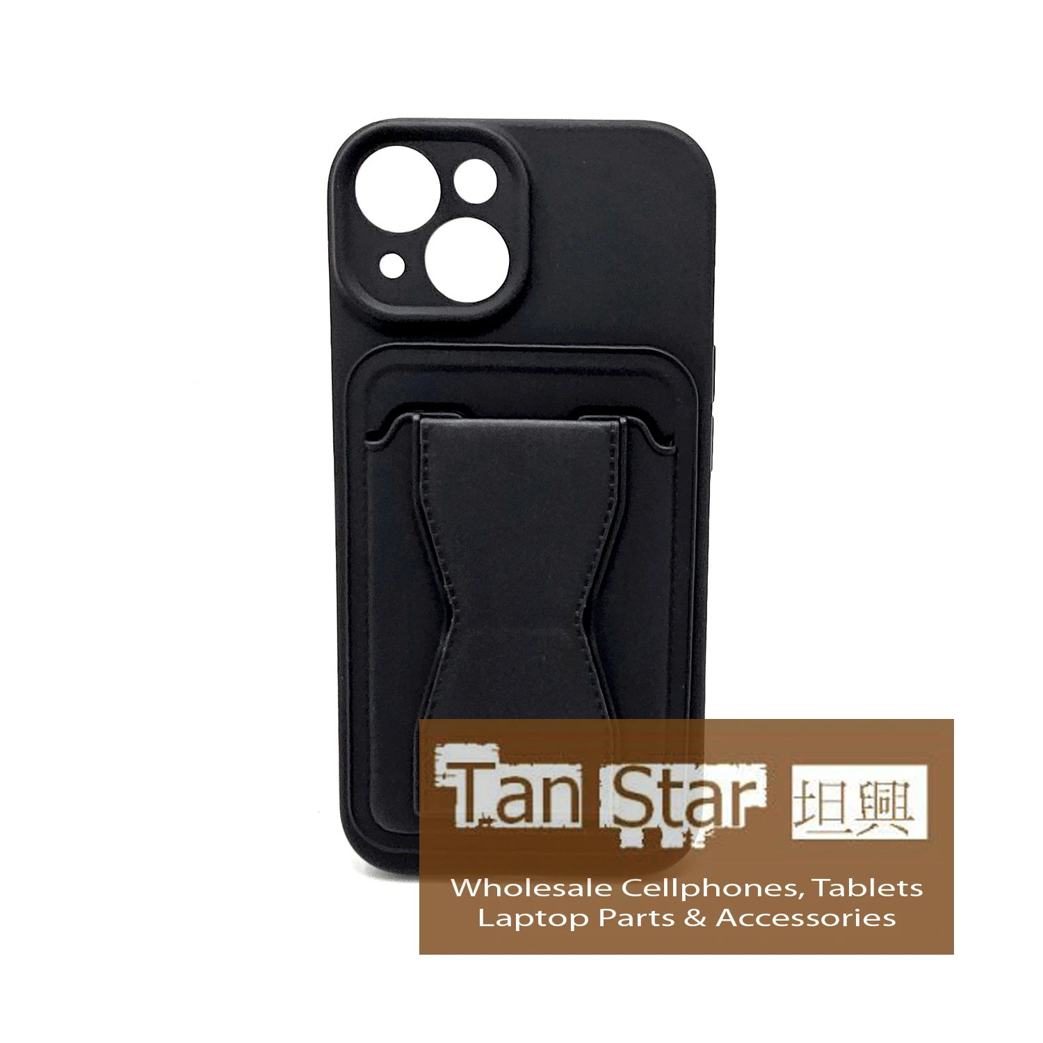 Standing Card Secure Wallet Card Holder Case with Passthrough Kickstand for Apple iPhone 15 Plus.