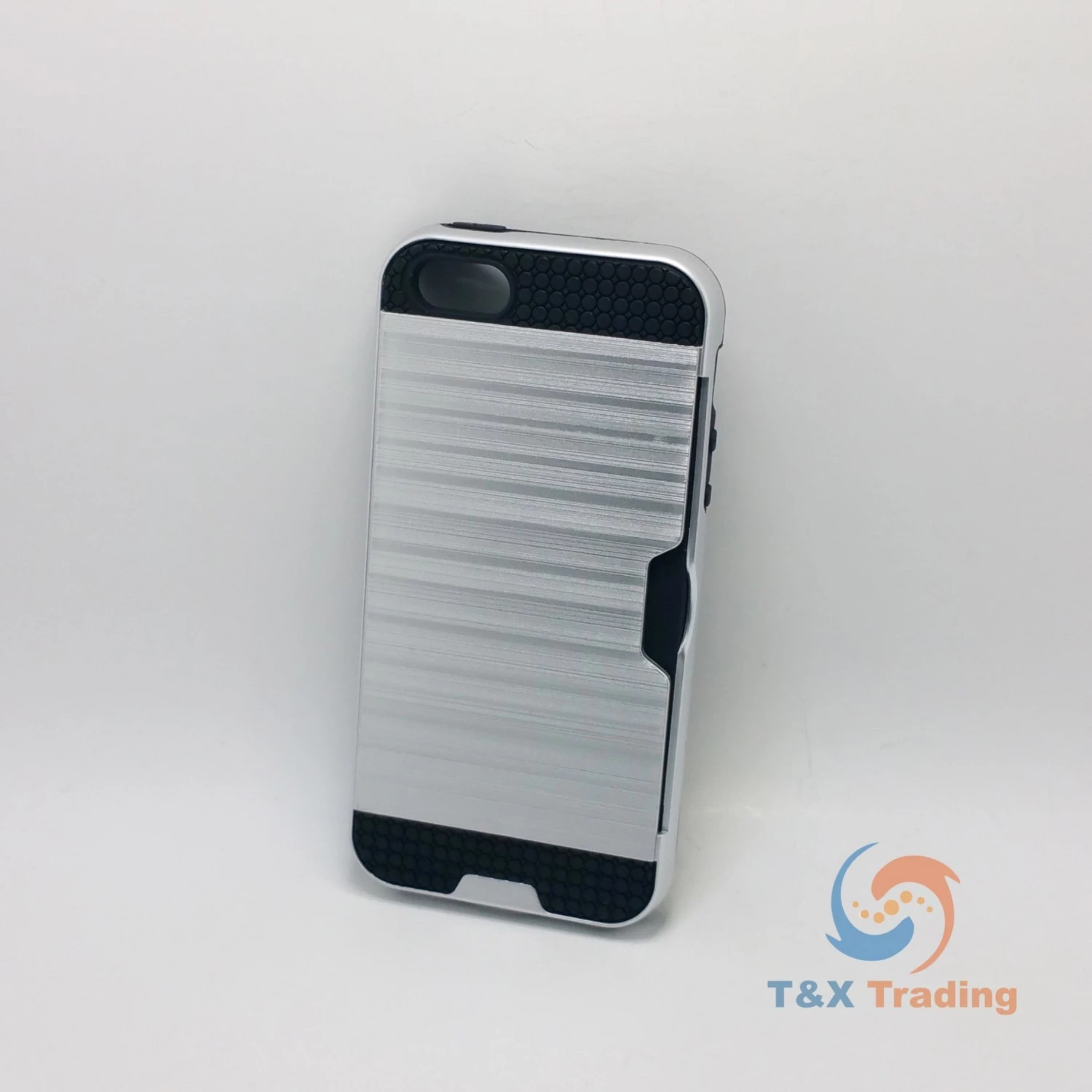 The brushed metal card case is made from separate polycarbonate and TPU layers that come together to offer extra durability and shock absorbency, which provides long lasting protection against drops, knocks and scratches for your phone. The outer hard polycarbonate layer features an attractive brushed metal effect for the perfect finishing touch. The softer shock absorbing TPU layer is designed to take all the beating every day wear and tear can throw at it. The two come together to not only form an irresistible barrier against damage but also look great, with a the two materials offering contrasting yet complementary aesthetics.