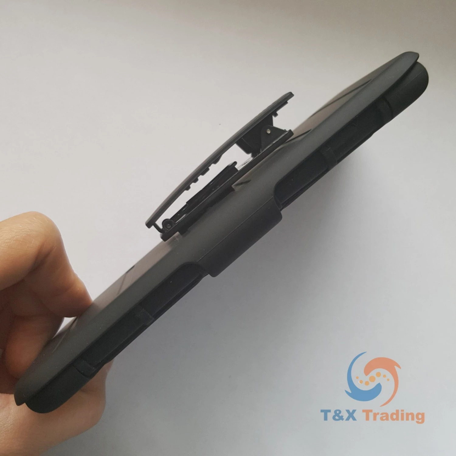 The case fits neatly and securely into the included belt clip holster that swivels for portrait or landscape orientation and provides quick access to your phone while on the go.