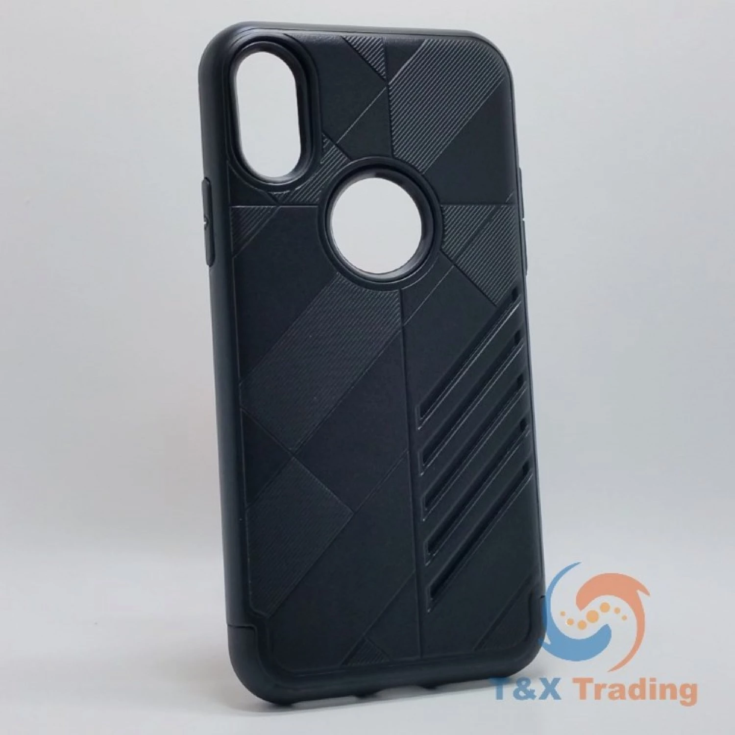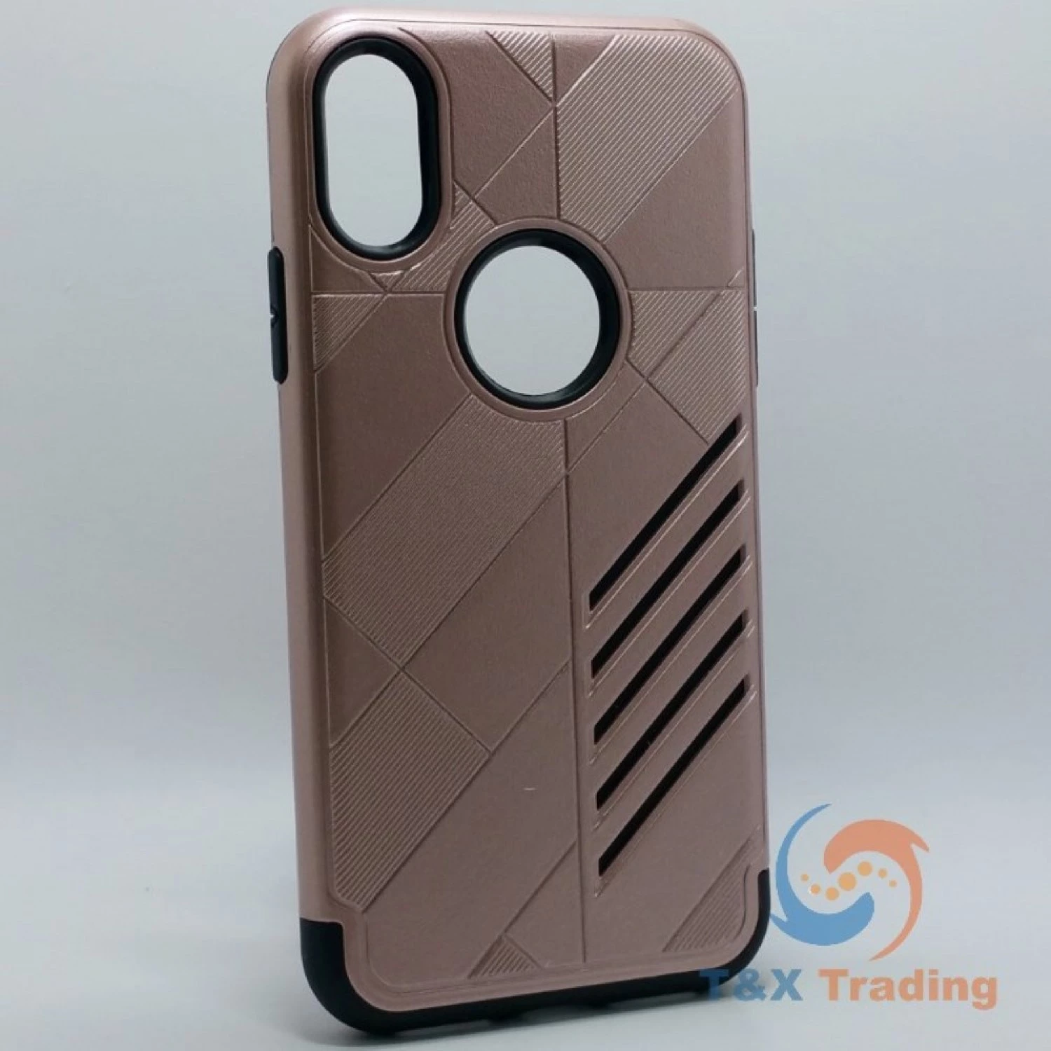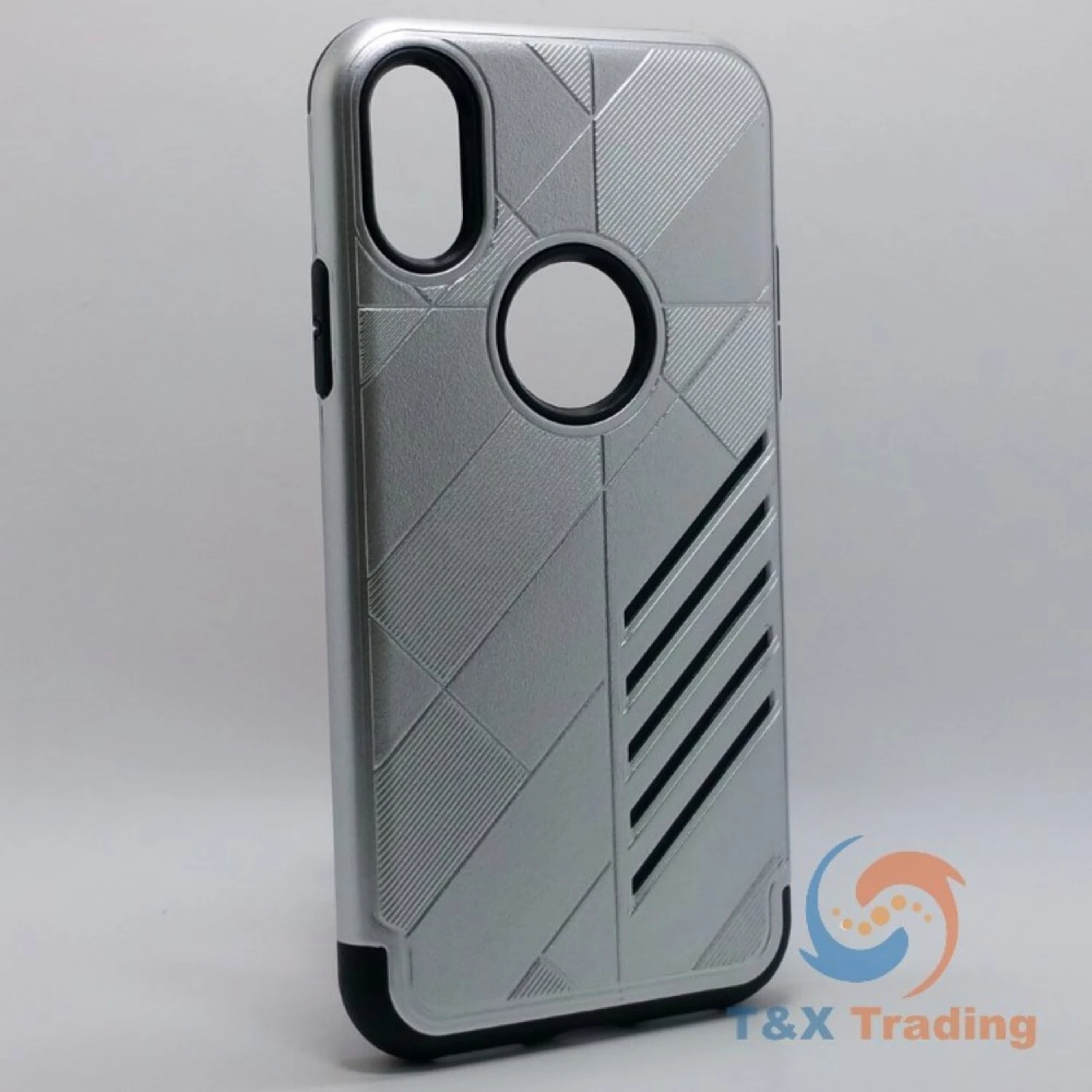 Silicone with Hard Back Metal Lines Cover Phone Case For Apple iPhone X / XS.