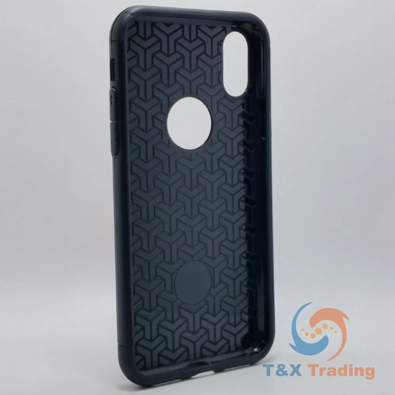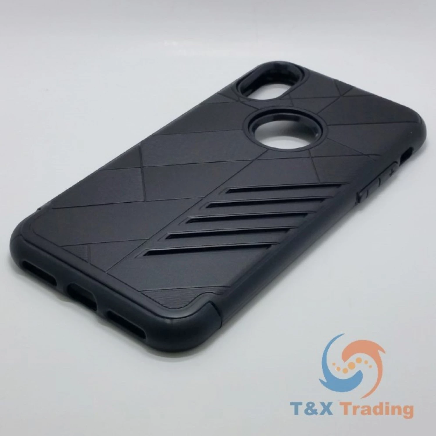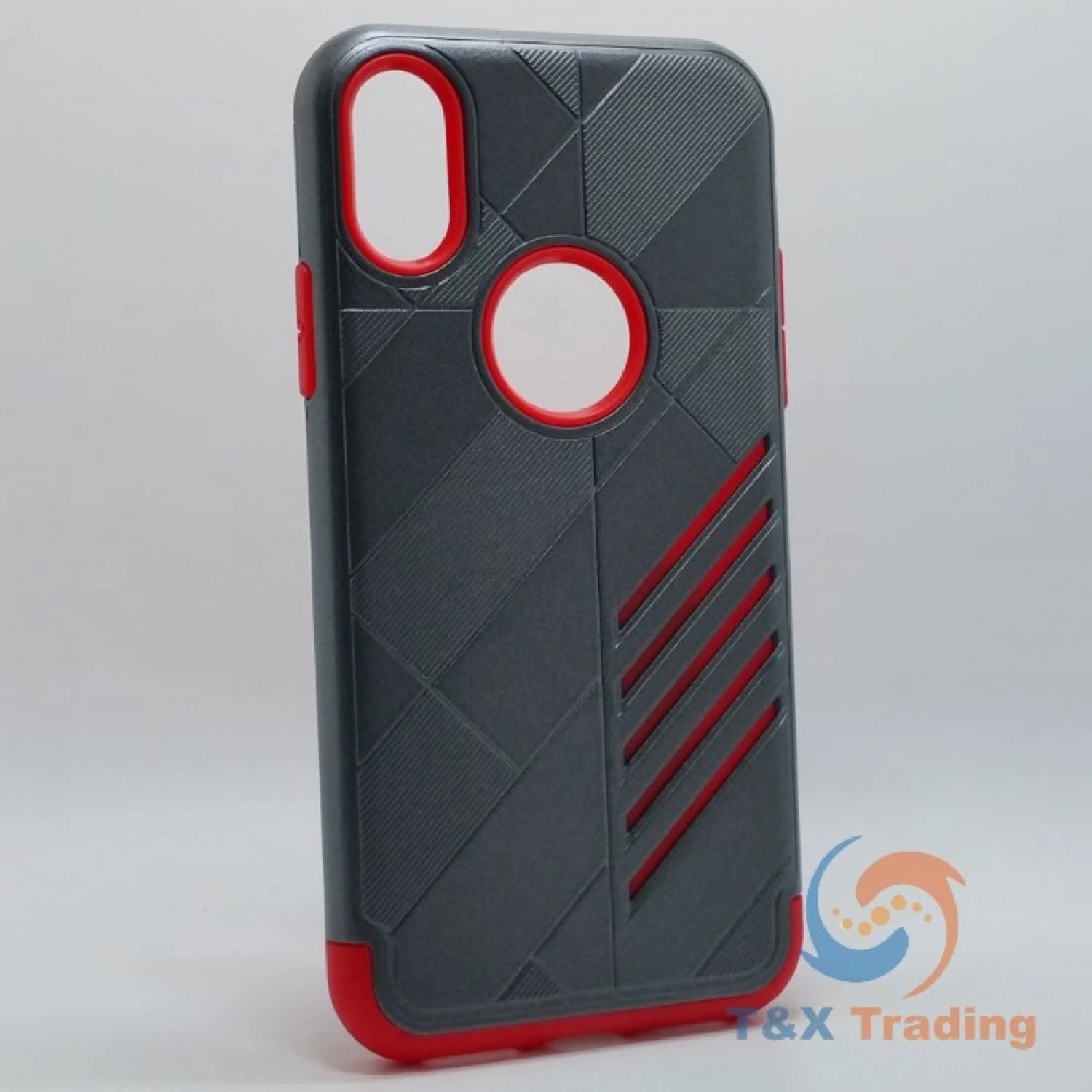 Silicone with Hard Back Metal Lines Cover Phone Case For Apple iPhone X / XS.