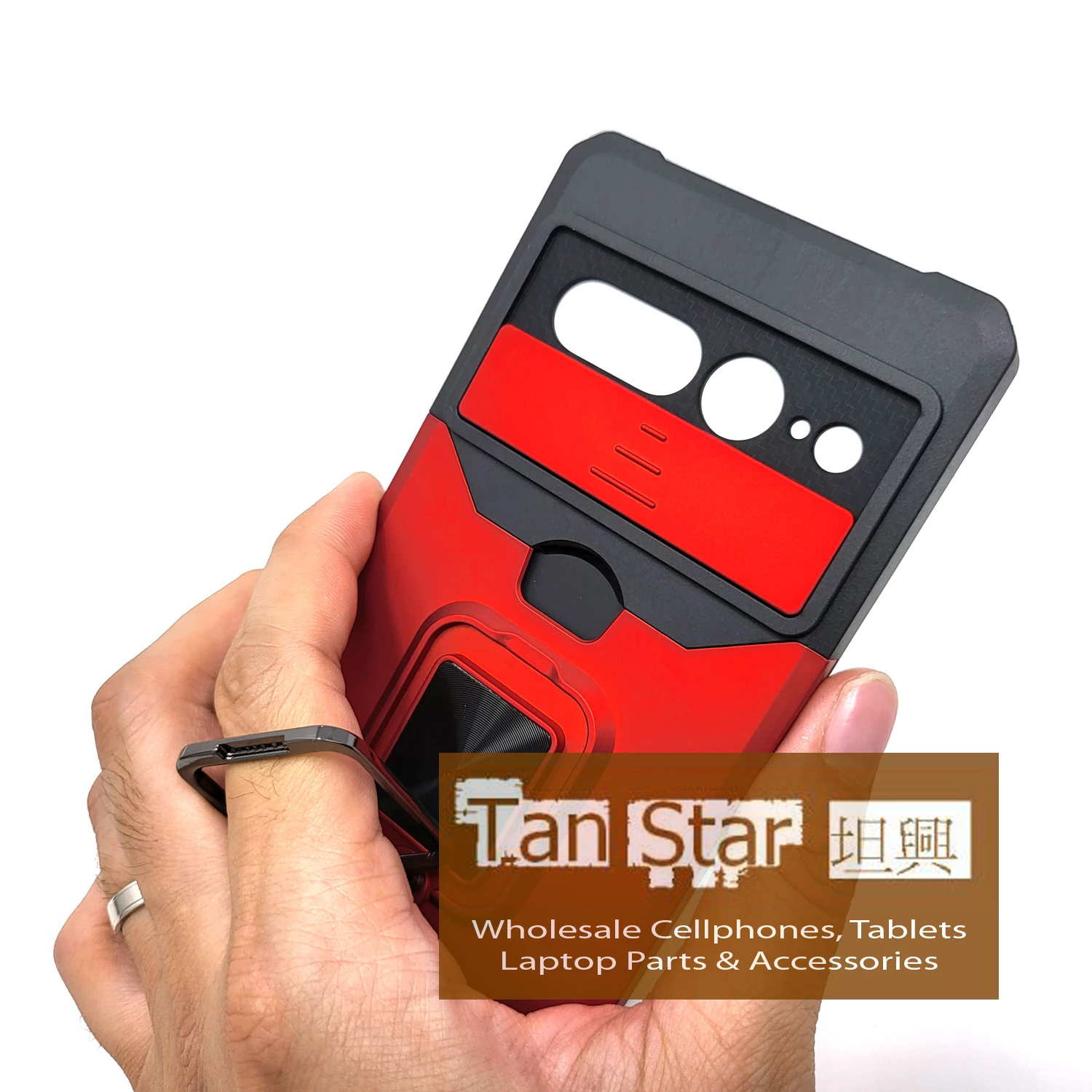Secure Card Holder Magnet Enabled Case with Ring Kickstand for Google Pixel 7 Pro.