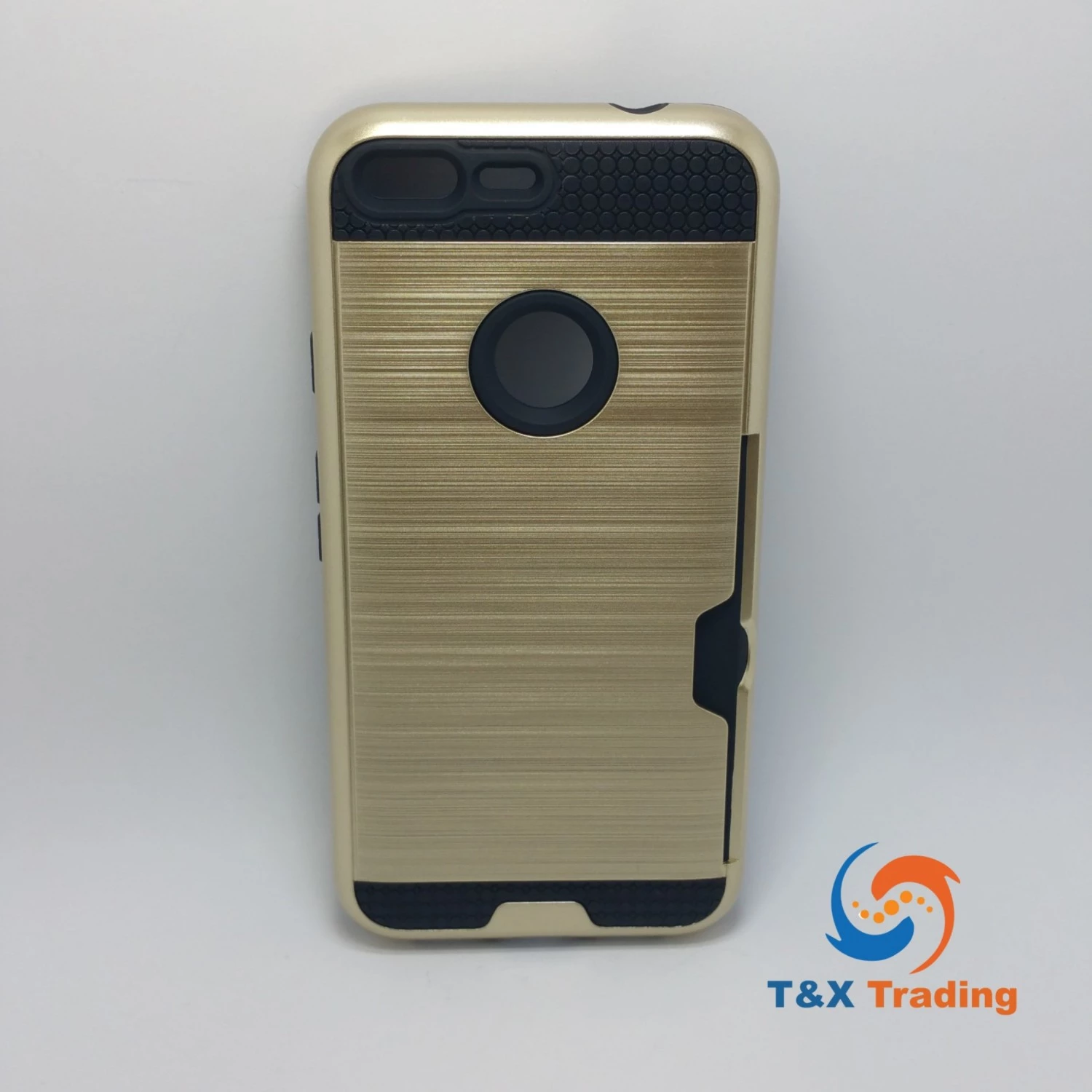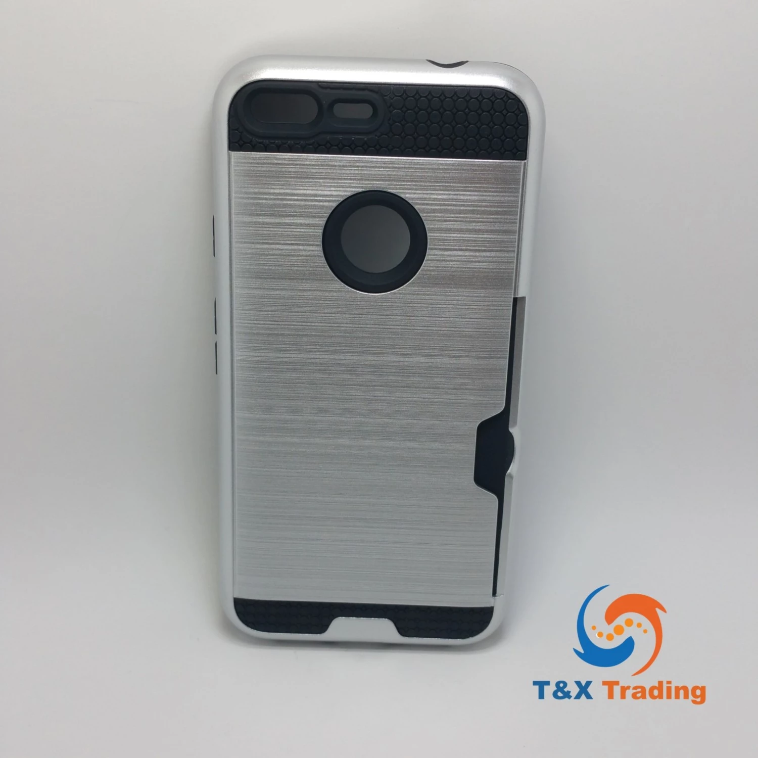 The brushed metal card case is made from separate polycarbonate and TPU layers that come together to offer extra durability and shock absorbency, which provides long lasting protection against drops, knocks and scratches for your phone. The outer hard polycarbonate layer features an attractive brushed metal effect for the perfect finishing touch. The softer shock absorbing TPU layer is designed to take all the beating every day wear and tear can throw at it. The two come together to not only form an irresistible barrier against damage but also look great, with a the two materials offering contrasting yet complementary aesthetics.