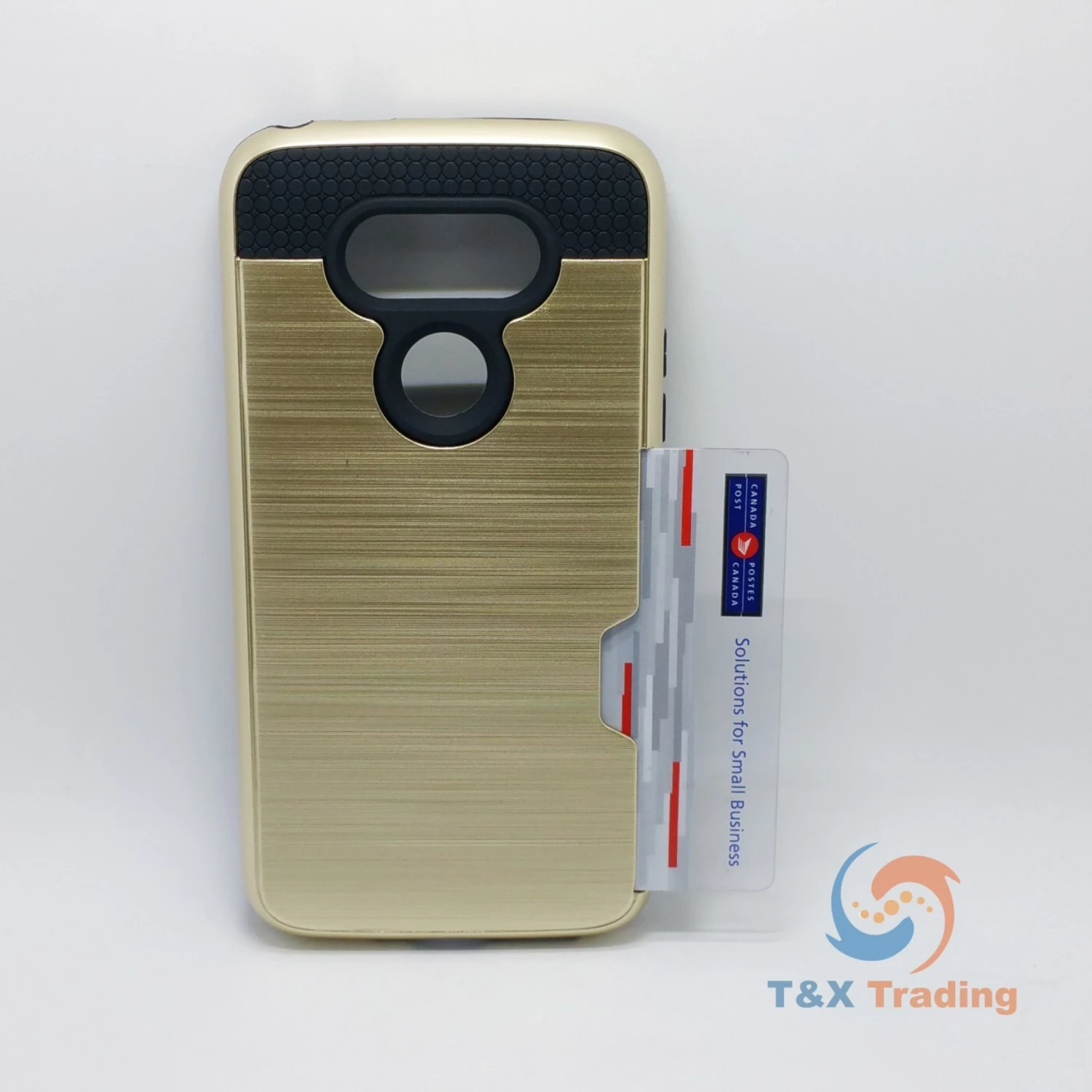 The brushed metal card case is made from separate polycarbonate and TPU layers that come together to offer extra durability and shock absorbency, which provides long lasting protection against drops, knocks and scratches for your phone. The outer hard polycarbonate layer features an attractive brushed metal effect for the perfect finishing touch. The softer shock absorbing TPU layer is designed to take all the beating every day wear and tear can throw at it. The two come together to not only form an irresistible barrier against damage but also look great, with a the two materials offering contrasting yet complementary aesthetics.