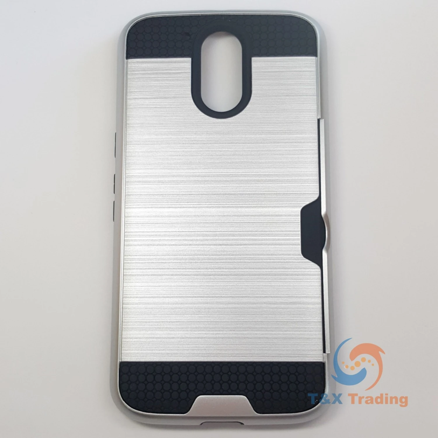 The brushed metal card case is made from separate polycarbonate and TPU layers that come together to offer extra durability and shock absorbency, which provides long lasting protection against drops, knocks and scratches for your phone. The outer hard polycarbonate layer features an attractive brushed metal effect for the perfect finishing touch. The softer shock absorbing TPU layer is designed to take all the beating every day wear and tear can throw at it. The two come together to not only form an irresistible barrier against damage but also look great, with a the two materials offering contrasting yet complementary aesthetics.