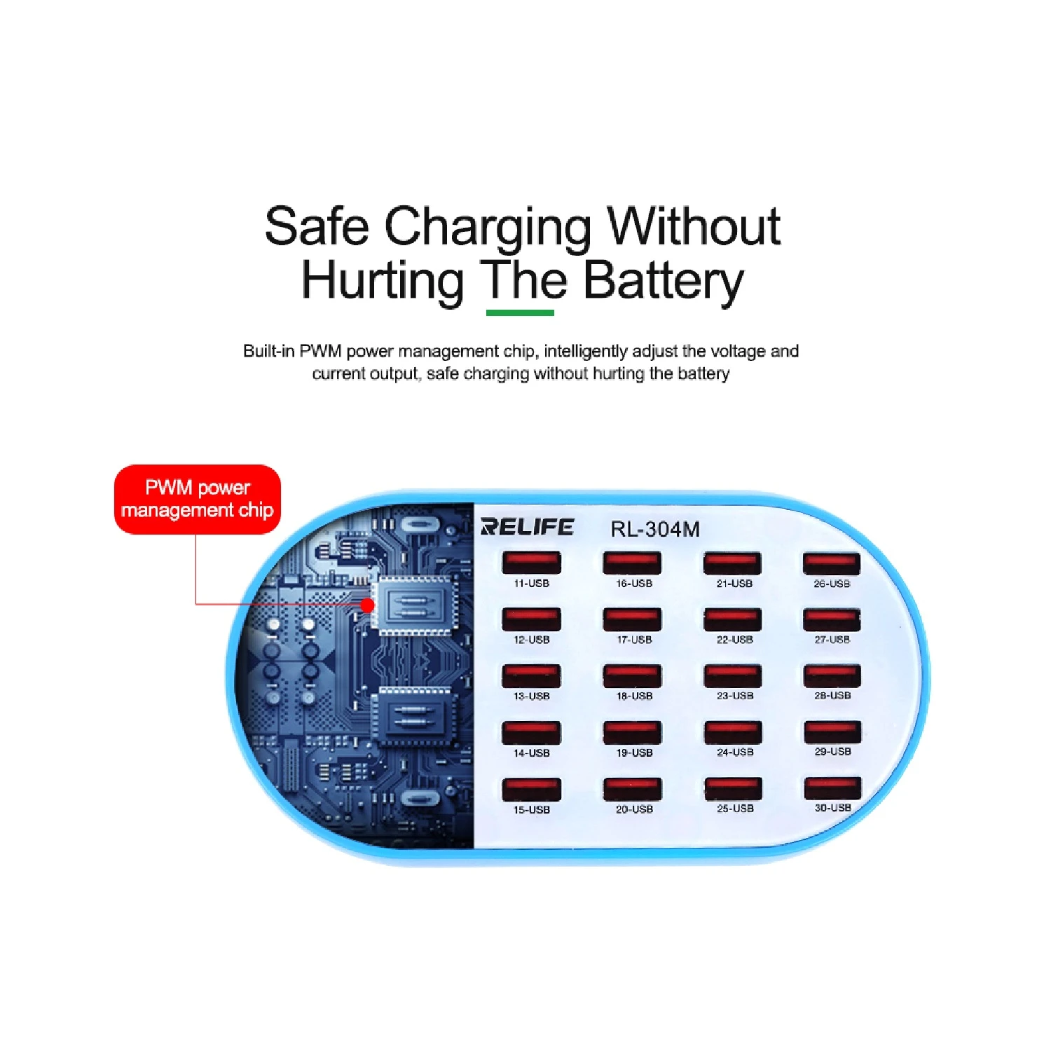 .Built-in PWM power management chip, intelligently adjust the voltage and current output, safe charging without hurting the battery