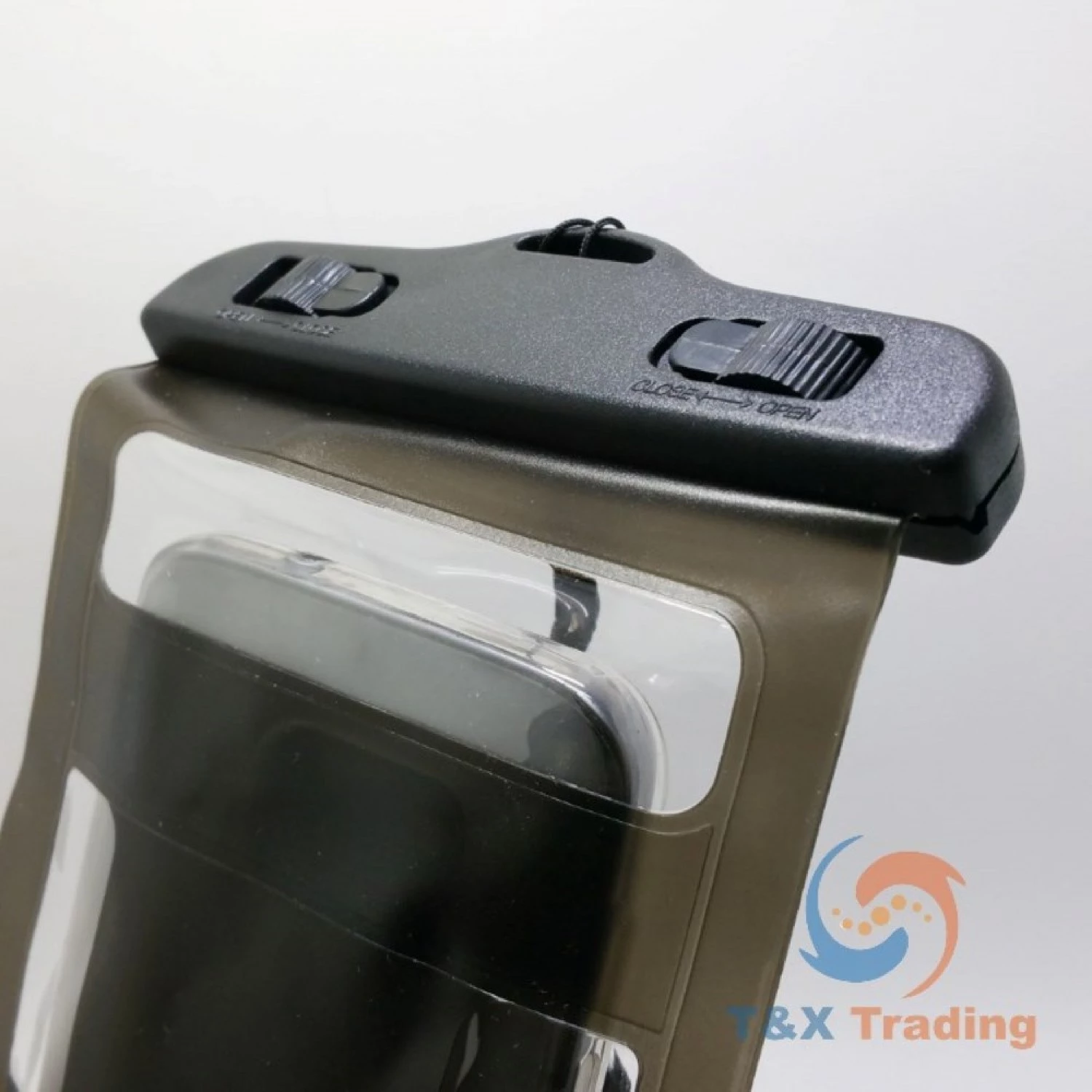 The touch screen is designed to work through clear cover. The lock around the border provides safety while swimming. It is adjustable with many other devices.