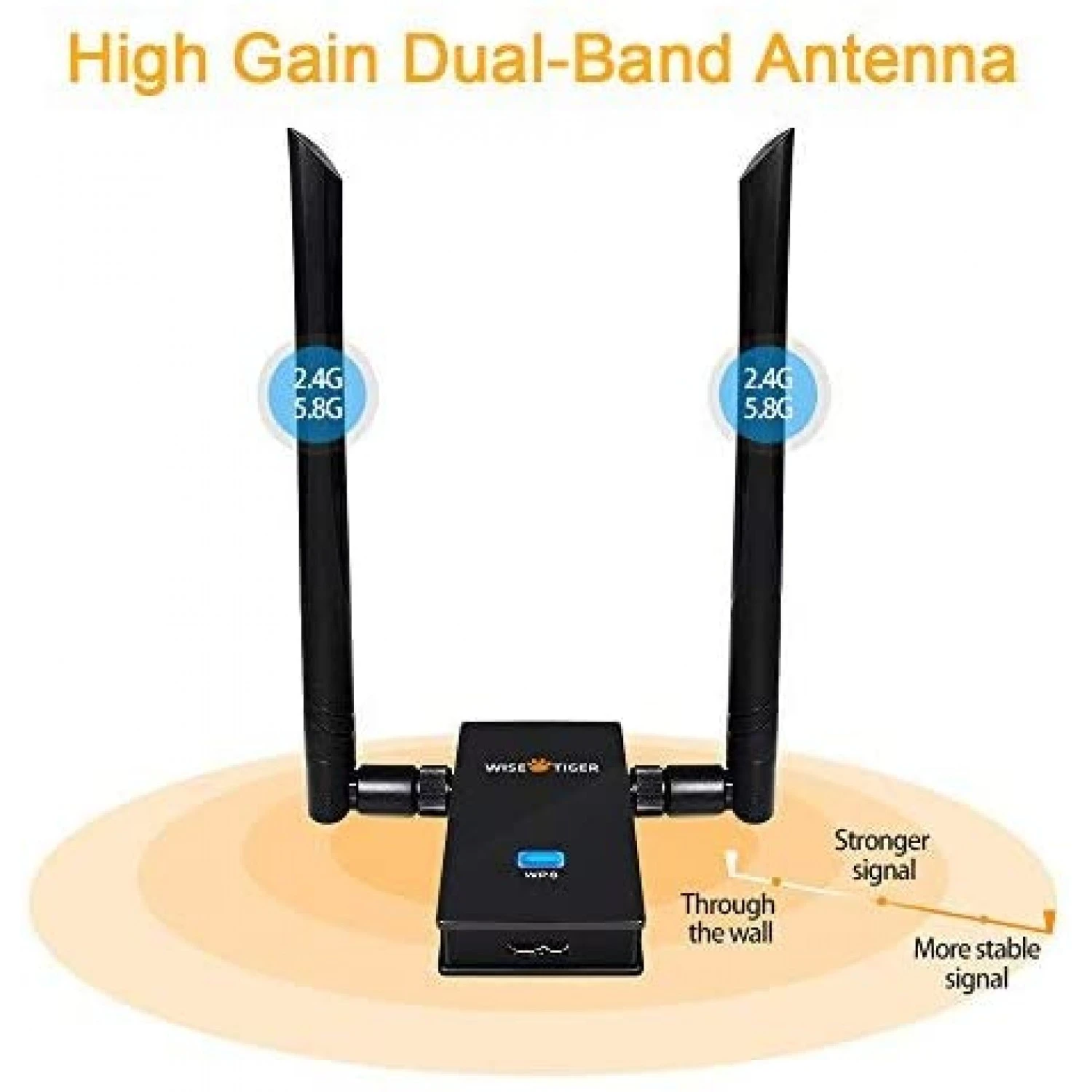 • 2x5dBi high gain antennas allow long range signal reception, ideal choice for large room